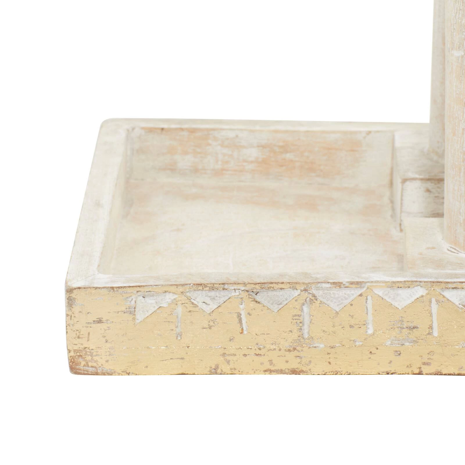 Organize your jewelry without the hassle of tangles with this distressed white and gold jewelry stand organizer. This accent piece is perfect to place on a vanity or dresser.
