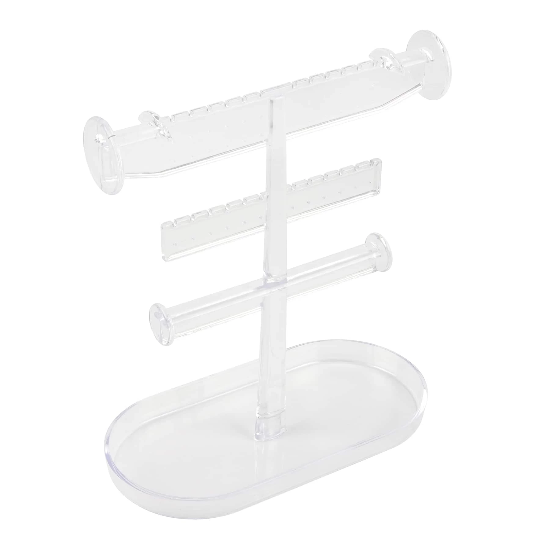 Use this jewelry stand to display your accessories in a stylish way. This stand has three layers that can display earrings, necklaces, bracelets and more.