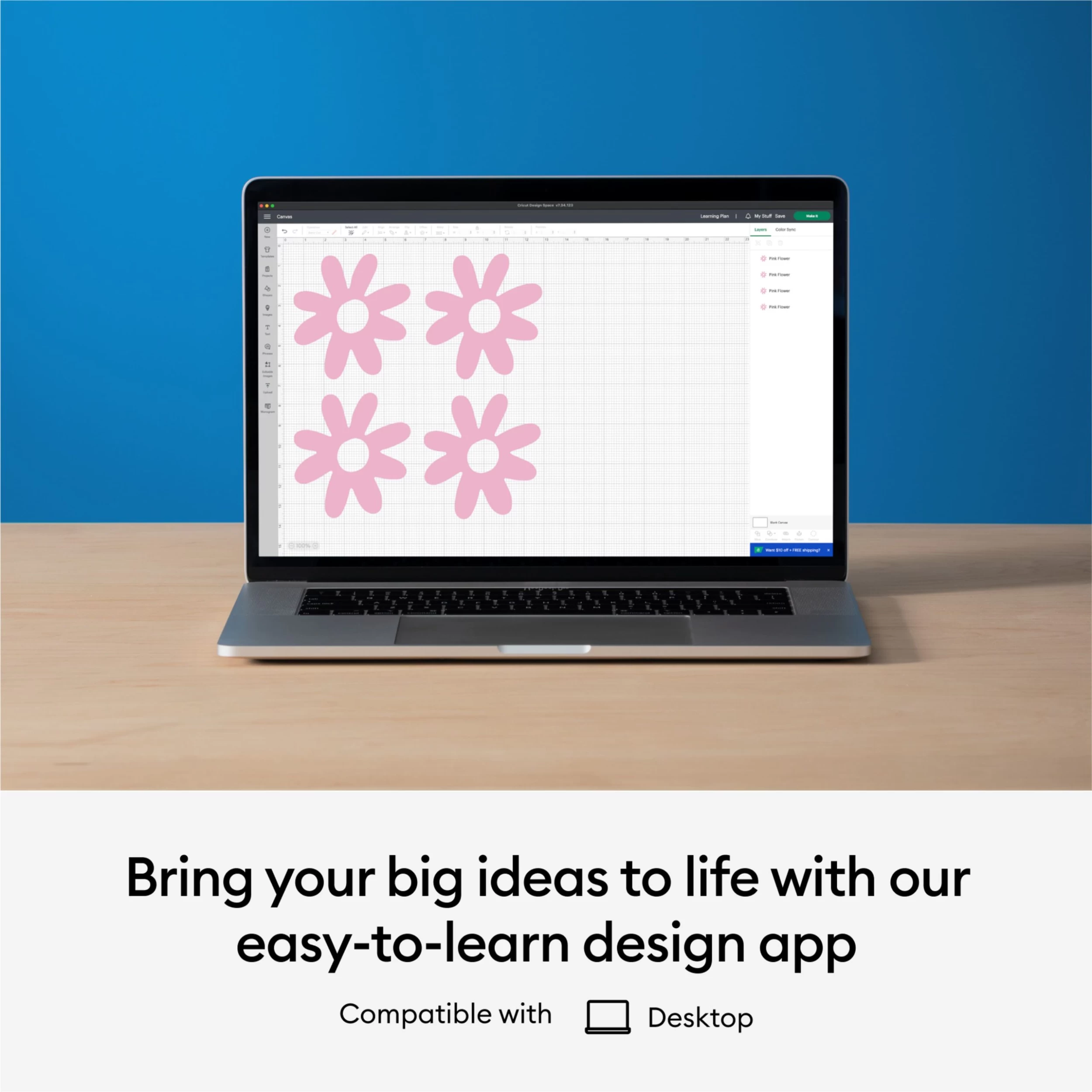 - Works with a free Cricut® companion app (desktop only)