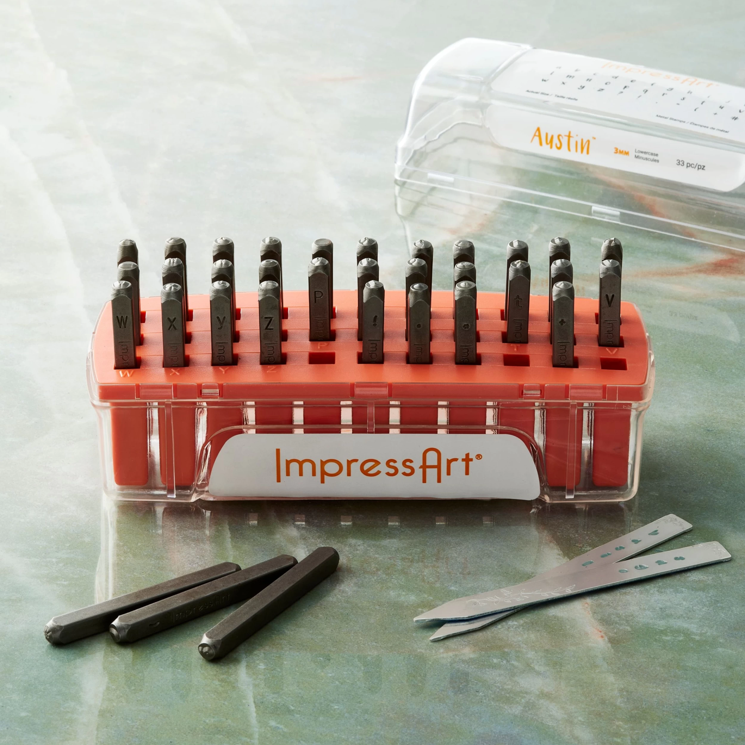 Use this lowercase letter stamp set from ImpressArt to personalize your metal stamping blanks. It will easily let you stamp the desired name, word or symbols on blank bars, washers, bracelet strips and more.