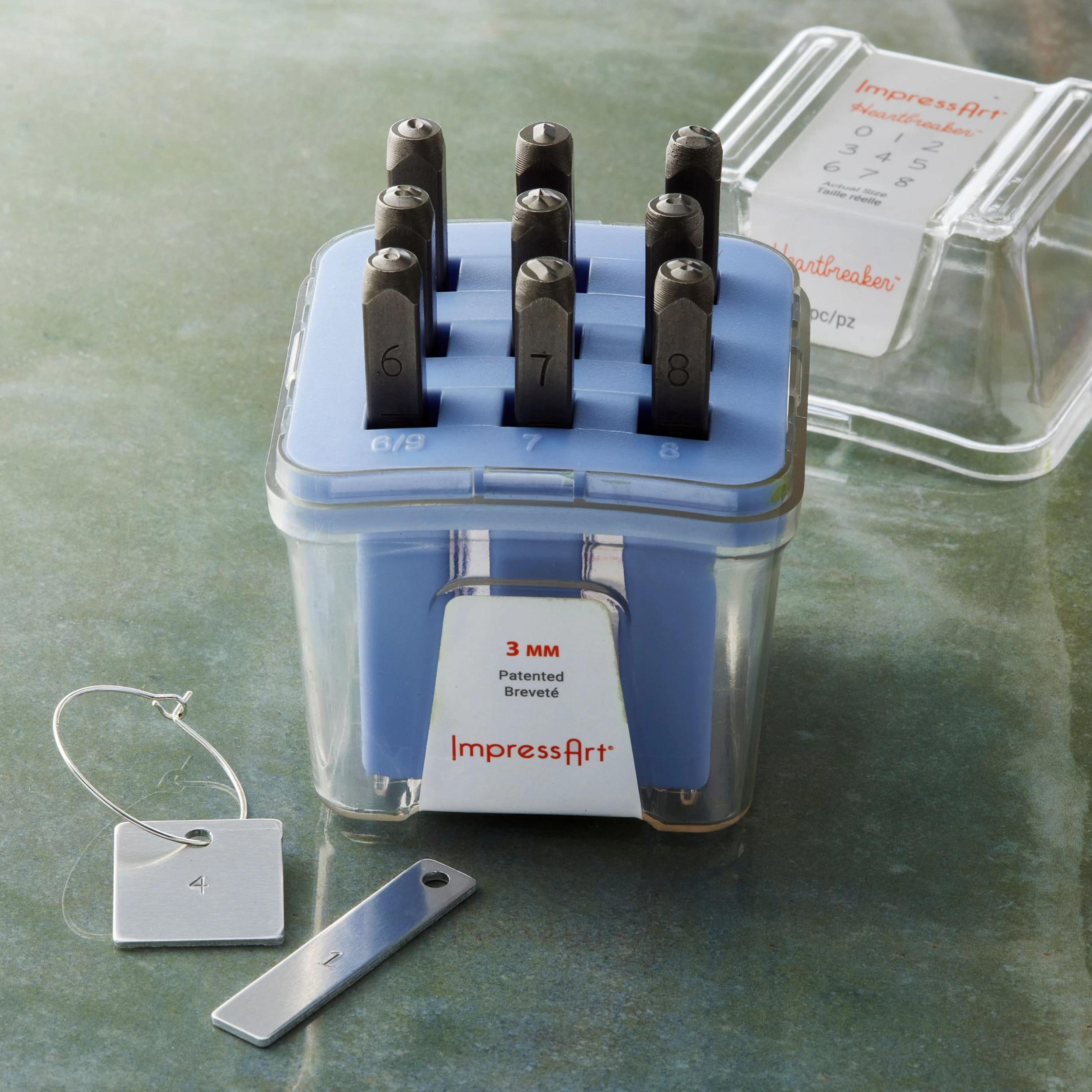 Featuring numbers one through eight, this stamp set is perfect for creating handmade crafts with inspirational, loving messages. It comes in ImpressArt’s patented storage case. The case features labeled slots for each stamp to keep them organized and for easy access. Rated for stamping on soft metals: Alkemé, aluminum, pewter, copper, brass, silver, gold, and other soft metals.