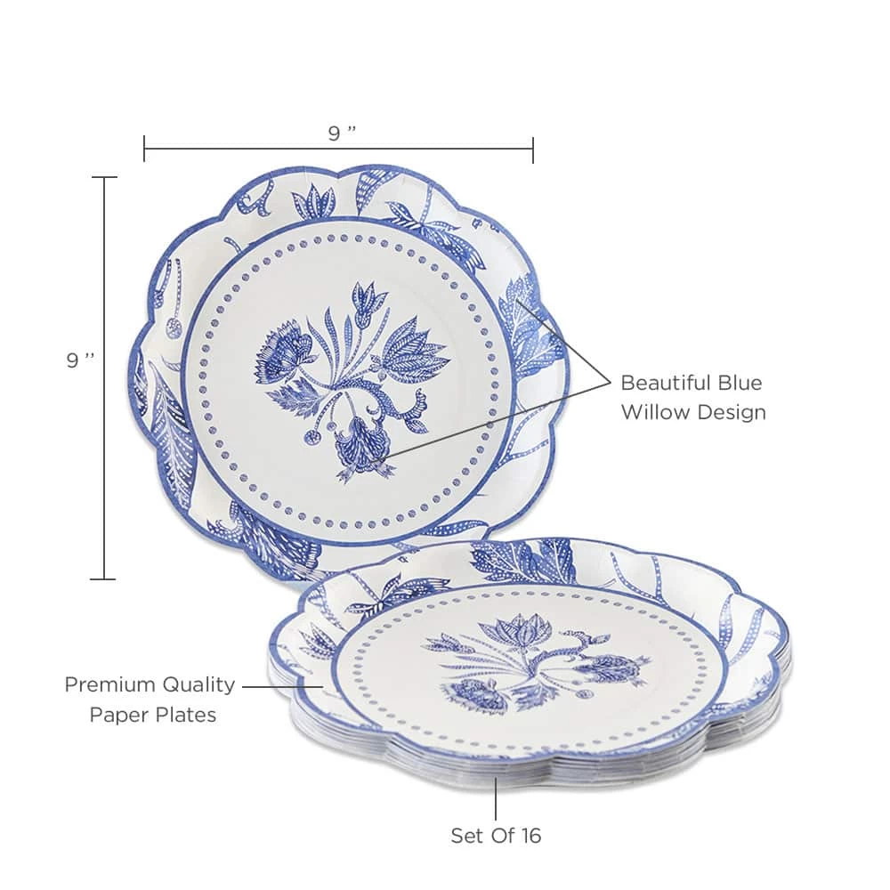 Kate Aspen’s Blue Willow 9″ Premium Paper Plates are the perfect size for dinner or brunch. They are made of the highest quality paper to ensure that your guests will get to enjoy every bite. Kate Aspen always does an incredible job designing their high-quality plates to highlight your food, making it look like it is being framed in a beautiful picture! Kate Aspen’s take on the classic Blue Willow pattern is so beautiful with scalloped edges, blue dots, and beautiful blue flowers. They are fancy enough for your most special event, like your wedding, or bringing beauty to an ordinary Friday night with your forever date.