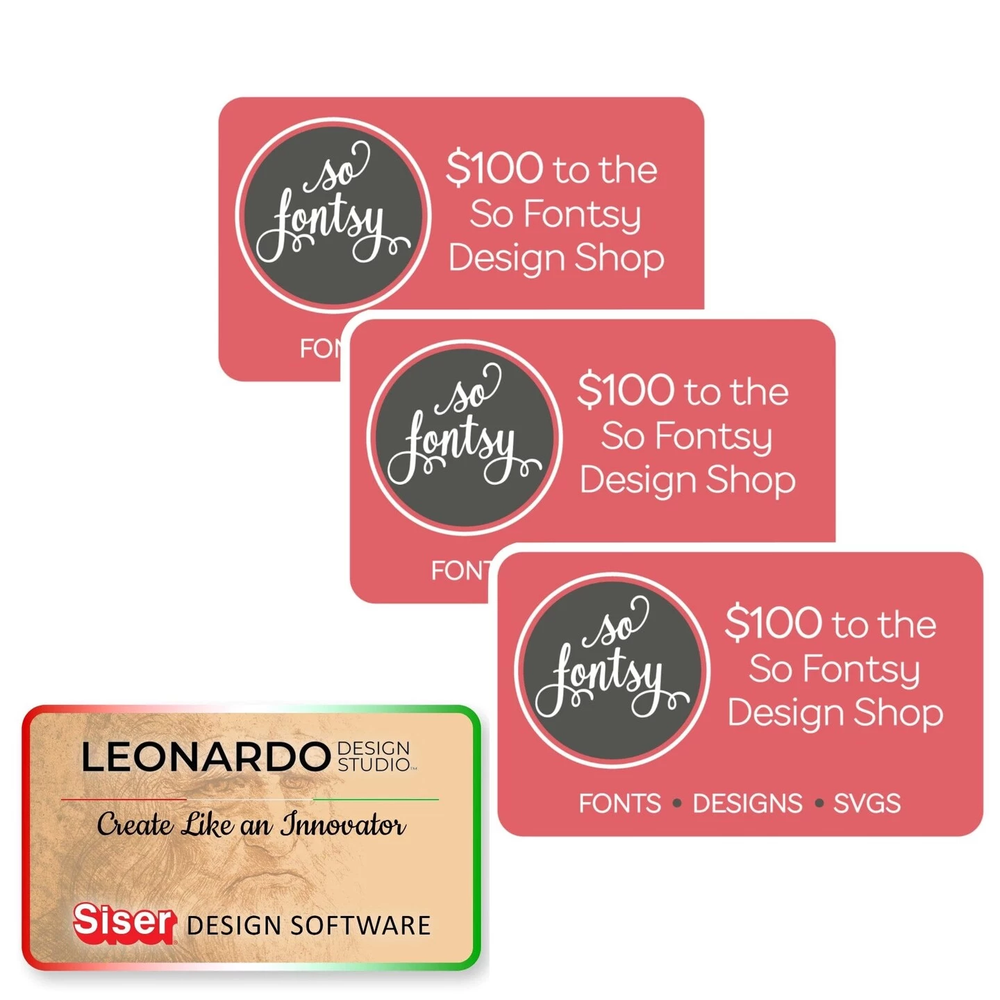 - $300 in So Fontsy designs – SVGs, JPGs, Commercial Use (Please note that the card is valid for the card redemption portion of the site)