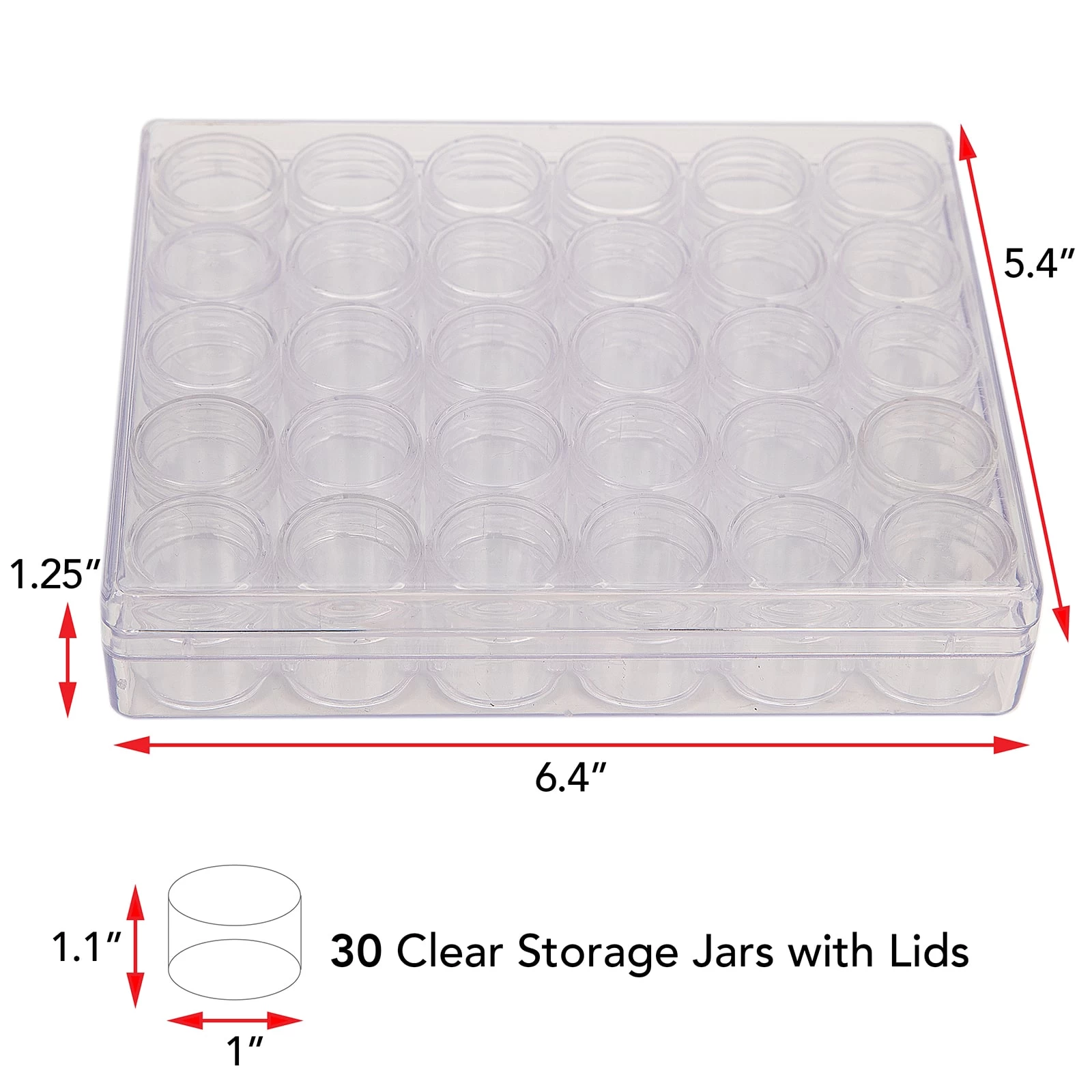 - Includes 30containers with lids (1” x 1.1”)