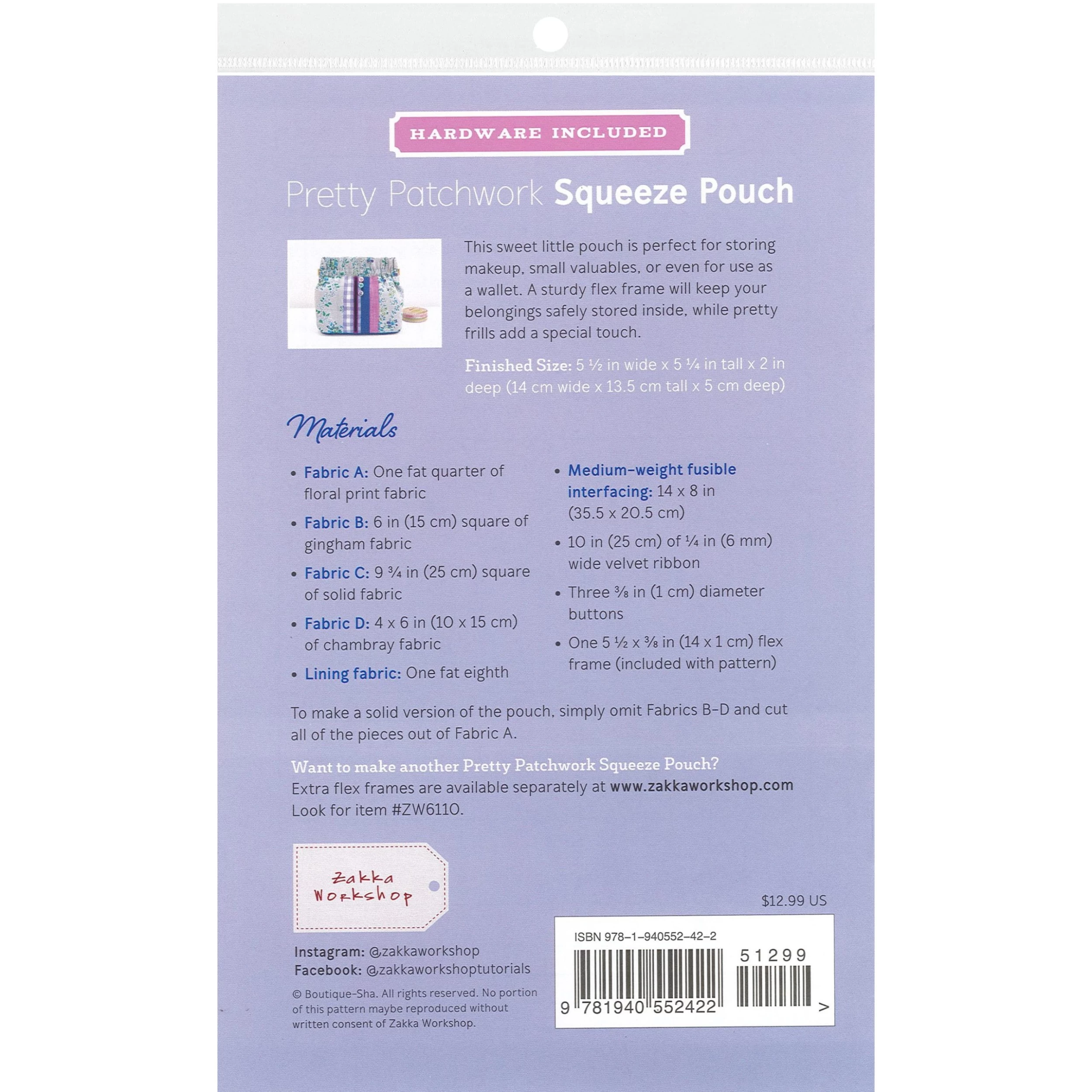 - Make additional bags with ZAKZW6110 Squeeze Clasp Flex Frame 5.5″, sold separately